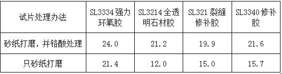 我們用幾款世林的環(huán)氧類型膠粘劑,做了鉻酸處理和不處理的試片在室溫固化24小時膠接剪切強(qiáng)度對比,數(shù)據(jù)如下