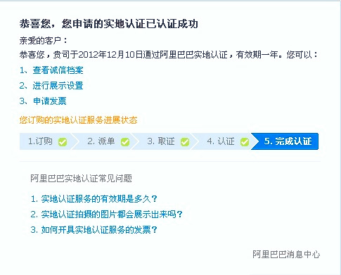 世林膠業(yè)在阿里巴巴誠(chéng)信通會(huì)員歷經(jīng)九年了,謝謝阿里巴巴平臺(tái)給世林膠業(yè)的支持.2012年11月底世林膠業(yè)進(jìn)行了實(shí)地認(rèn)證申請(qǐng),阿里巴巴的認(rèn)證效率非常之高,詳情請(qǐng)看下圖: